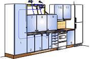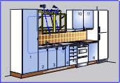 Absenken der Wandschränke bis herab zur Arbeitsplatte, so dass sie für Behinderte erreichbar sind.